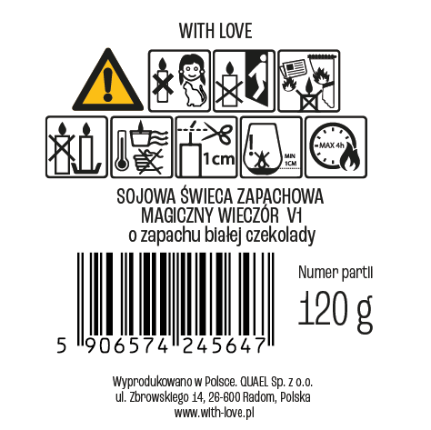 Świeca sojowa zapachowa Magiczny Wieczór - Biała Czekolada 5906574245647